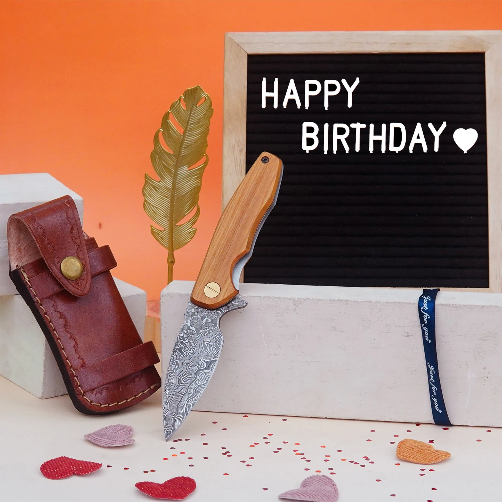 【SOLID, SHARP & APPEALING】- Truly hammer forged damascus knife; composed of 1080 and 15N20, folded 5 times, starting from 9-layers into a ladder pattern of 300 layers of damascus steel. Shatter proof to withstand any cutting task 【MASTERPIECE GIFT】- Our Damascus knives make the perfect gift for him—ideal gift for groomsmen, best man, father, boyfriend, and husband. A timeless and premium choice! 【LOOKS CLASSY, WORKS SHARPLY】- This damascus steel folding knife gone through high temperatures and excellent edge retention treatment, in its making, for improved longevity. Sharp & large enough for high performance work without causing hand fatigue