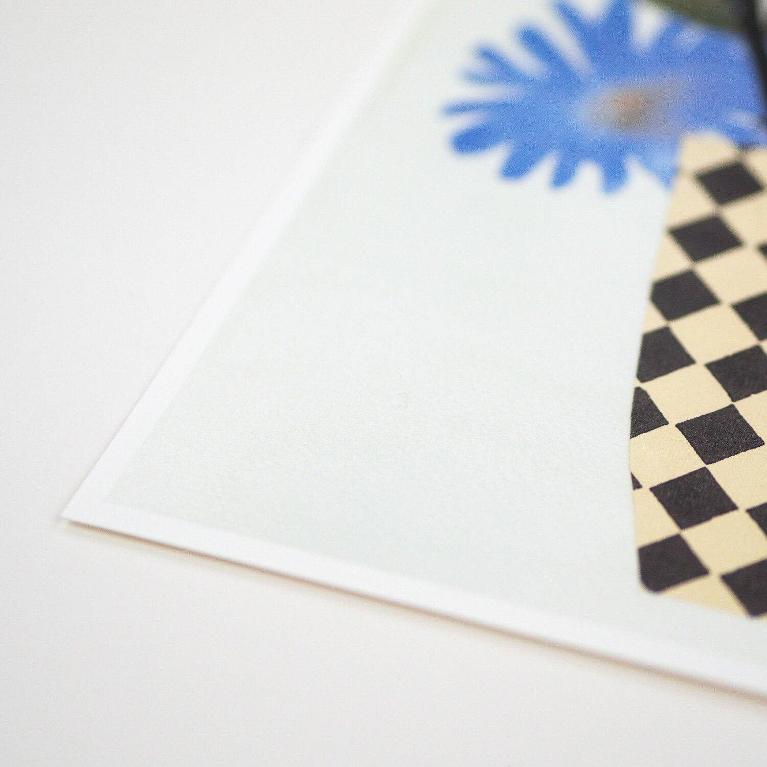 This larger version of our very popular Chequer Vase card is perfectly to gently lift a room. This simple and elegant image is scanned from an original artwork so has so much texture and character.
