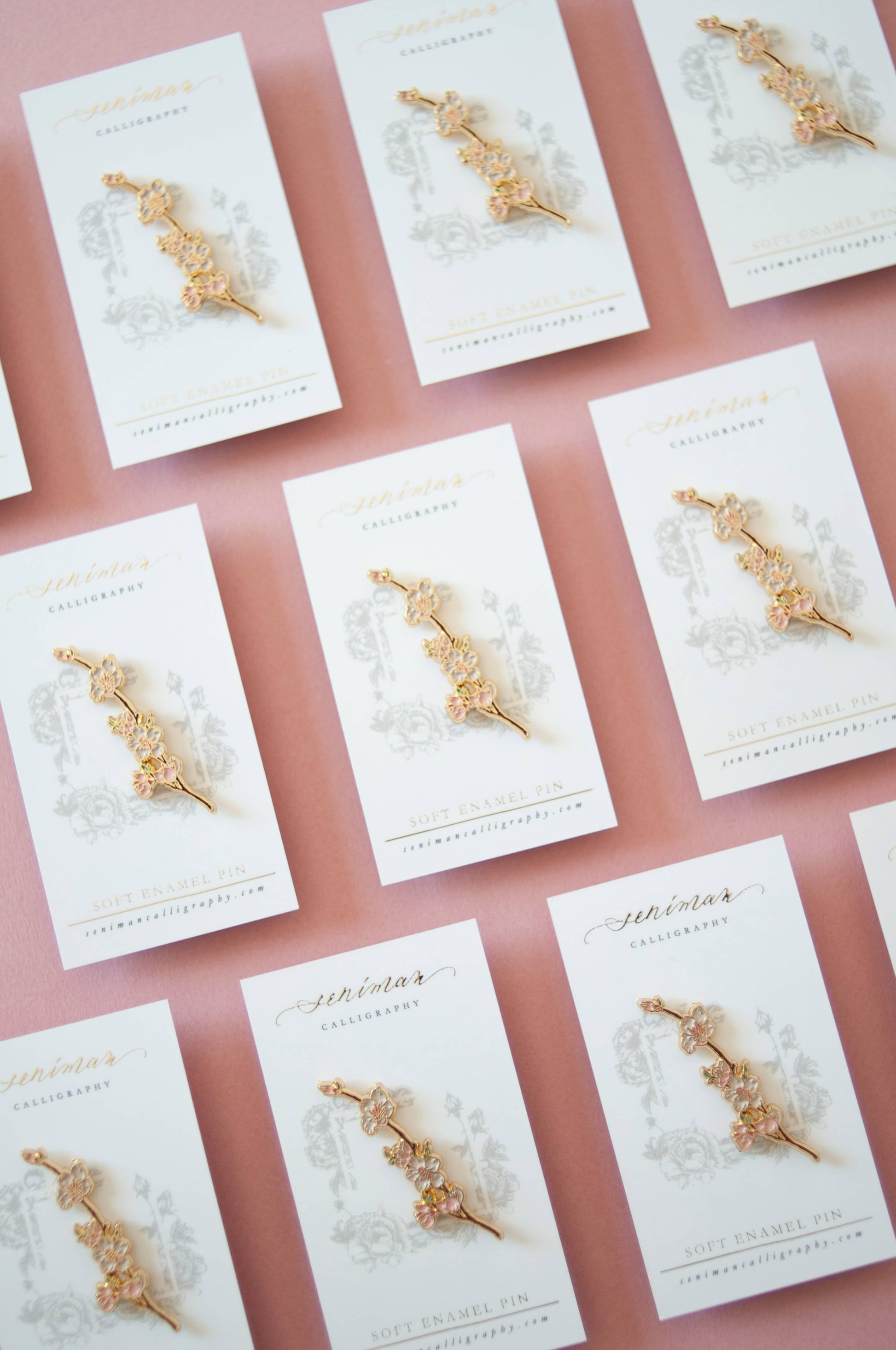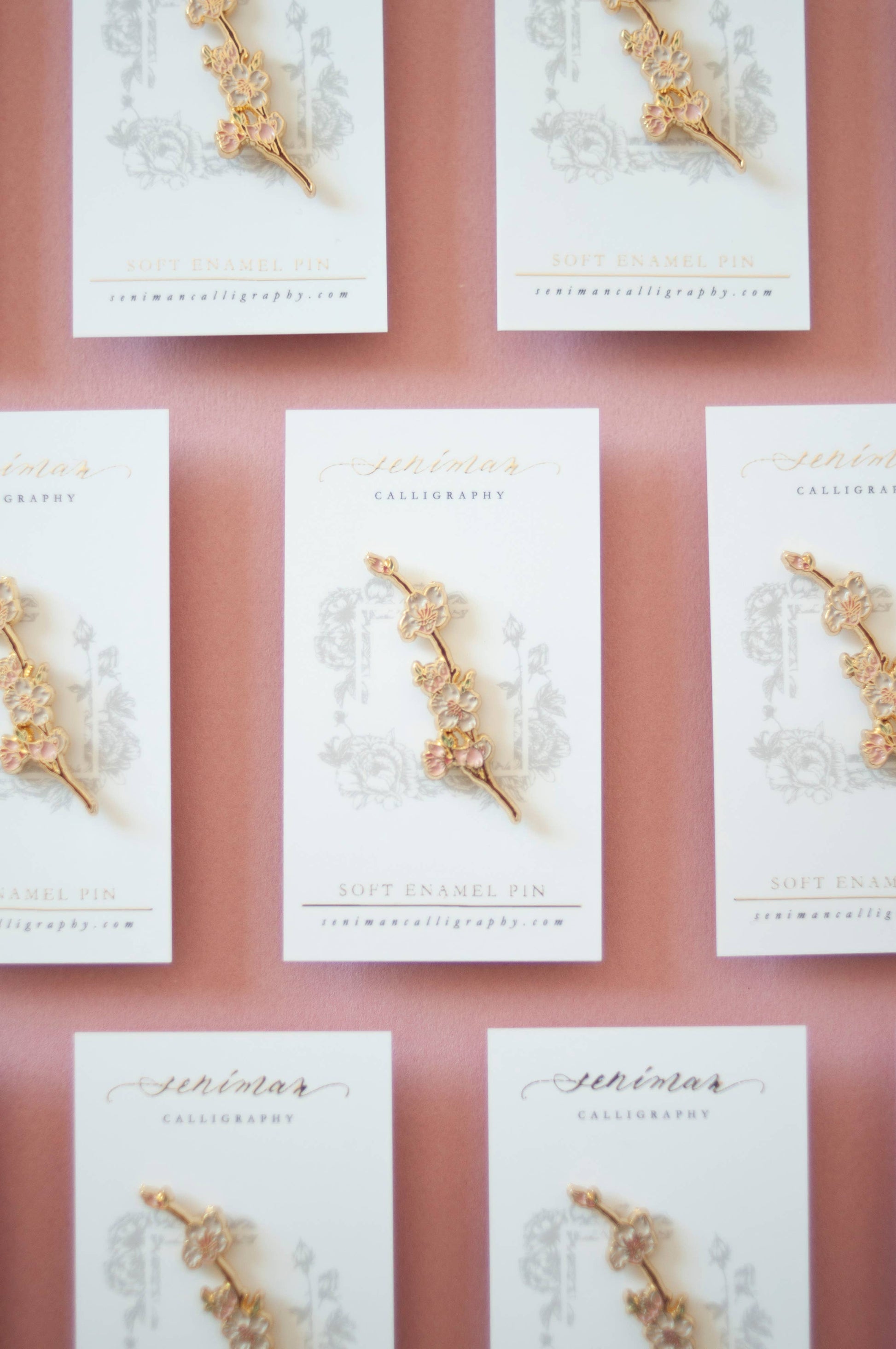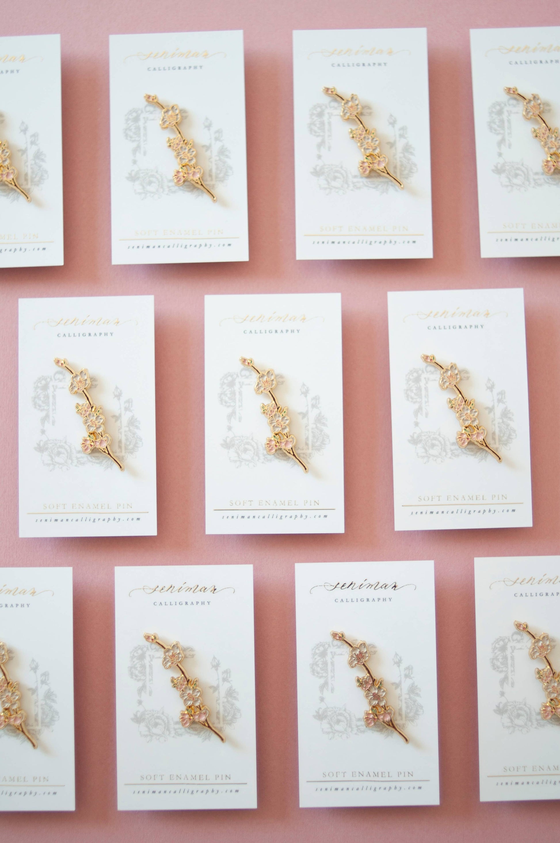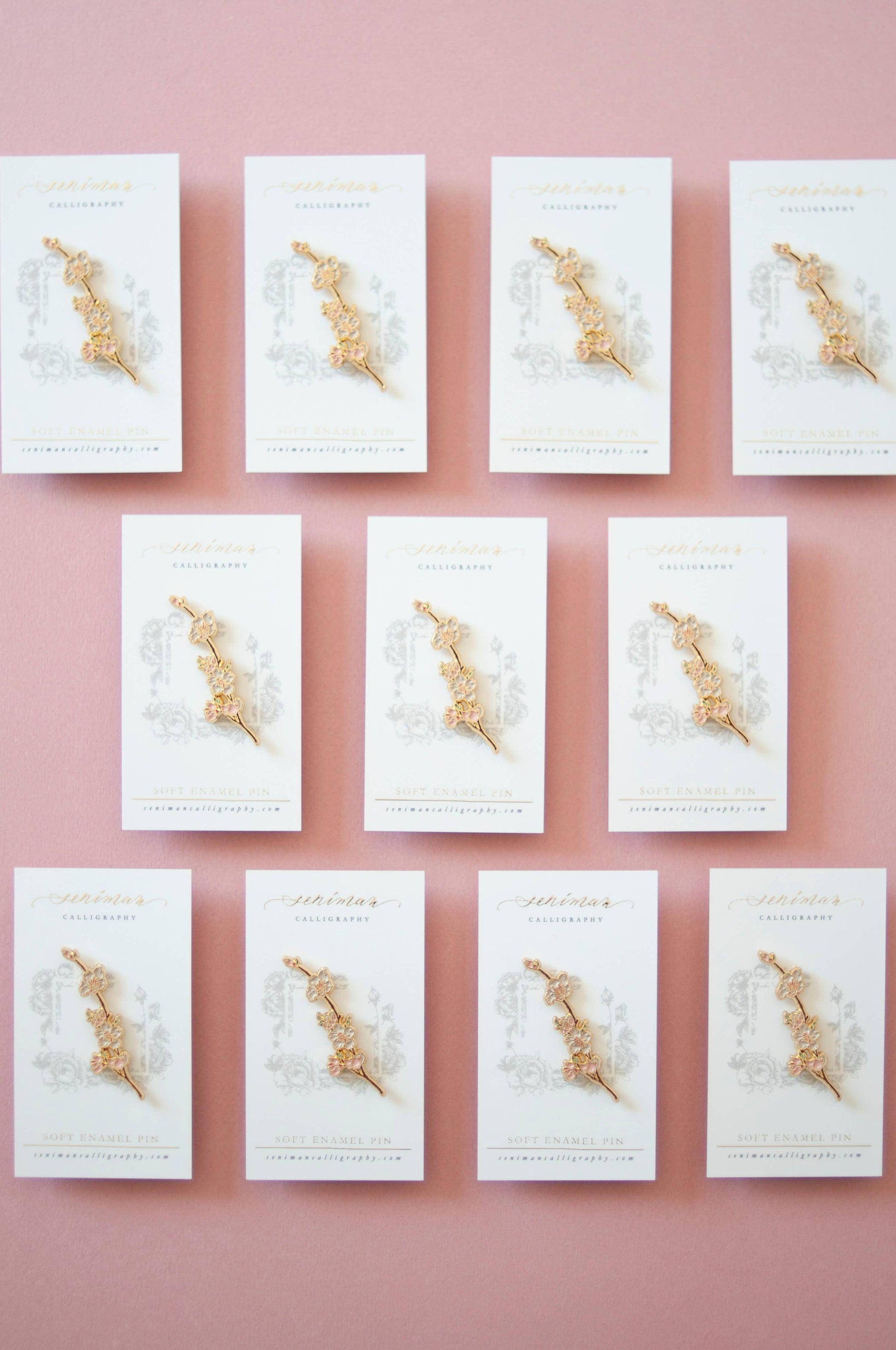 A blush cherry blossom soft enamel pin for your daily botanical pick-me-up. The perfect addition to your flower enamel pin collection and to personalize your bags, jeans, jackets, and pouches!