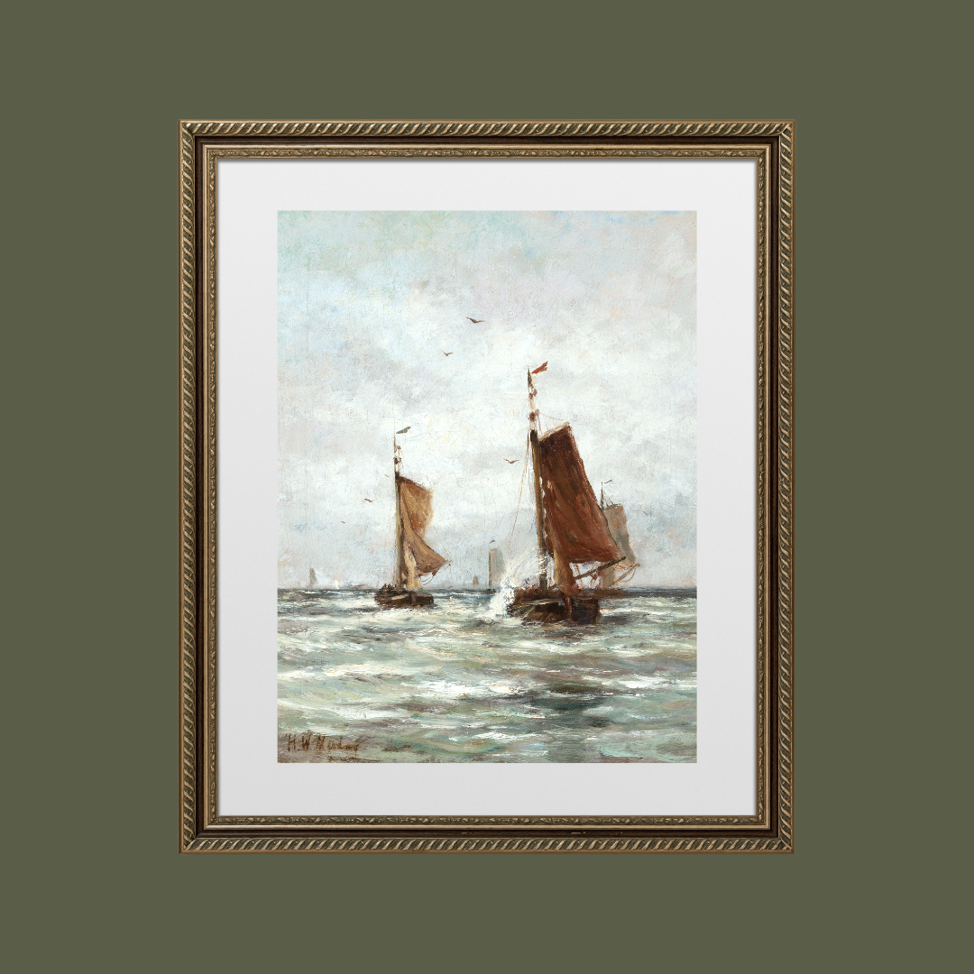 Replication print by Hendrik Willem Mesdag titled "Fishing on the Choppy Sea near Scheveningen" (19th-20th c.)