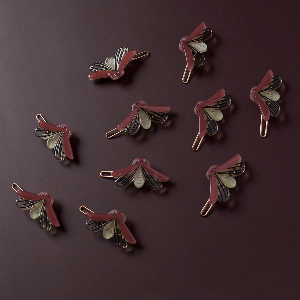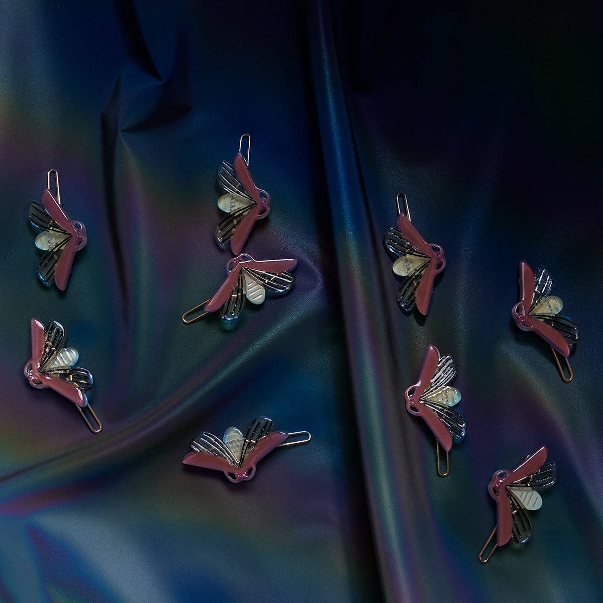 Reminiscent of the lucky Cicada brooch from the 1960s, these detailed little barrettes feature eye jewels, and painted details, and are even glow-in-the-dark!