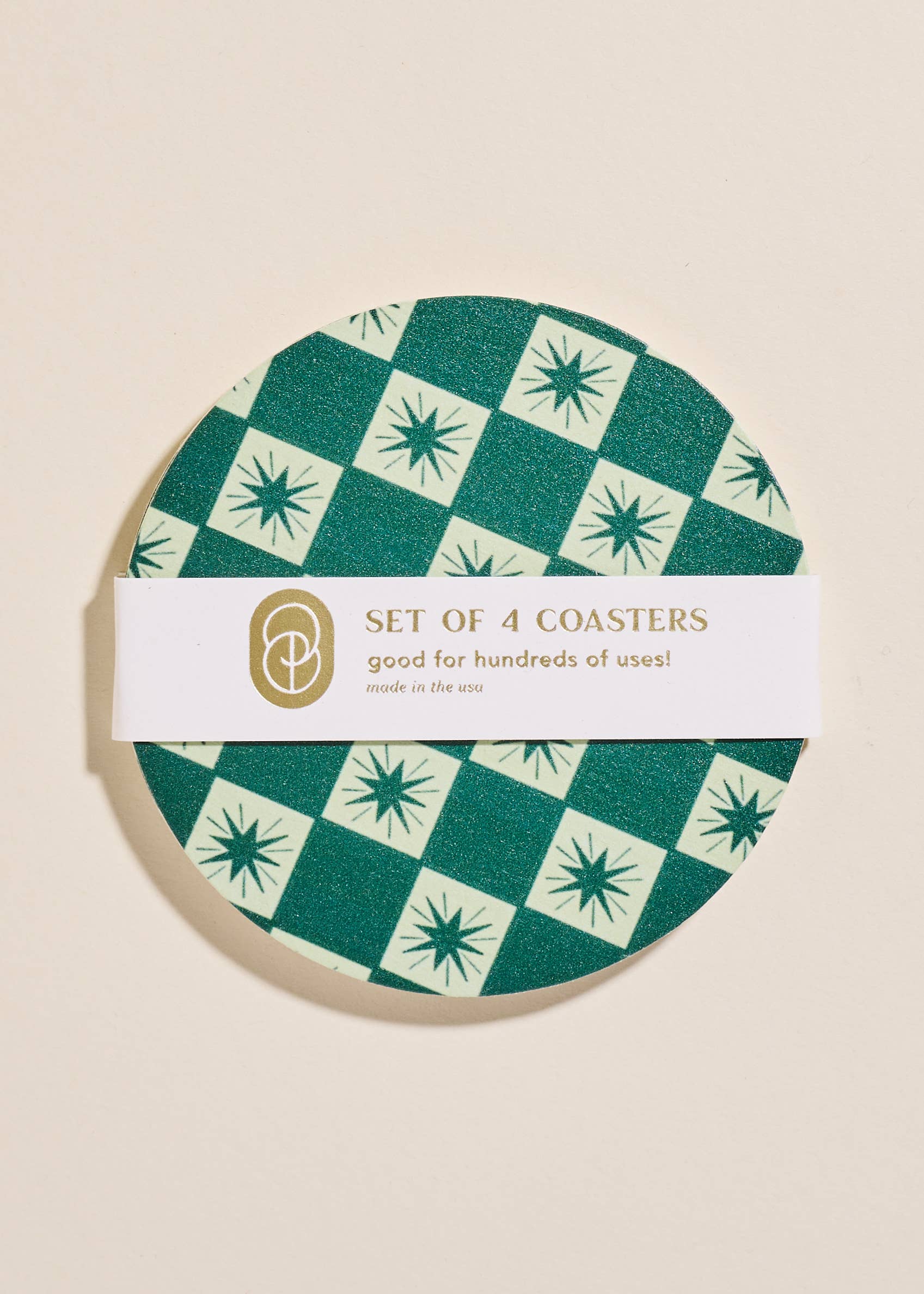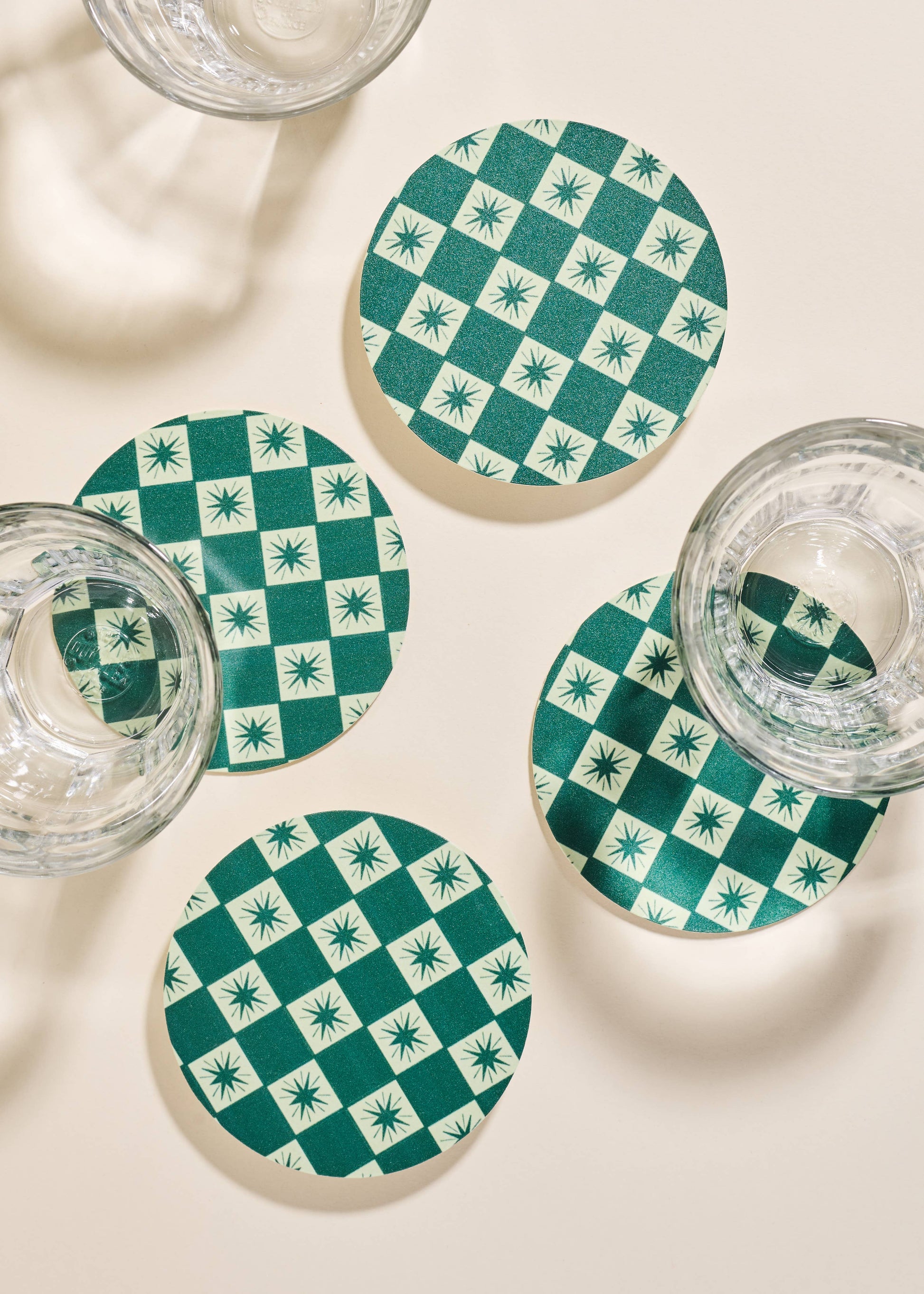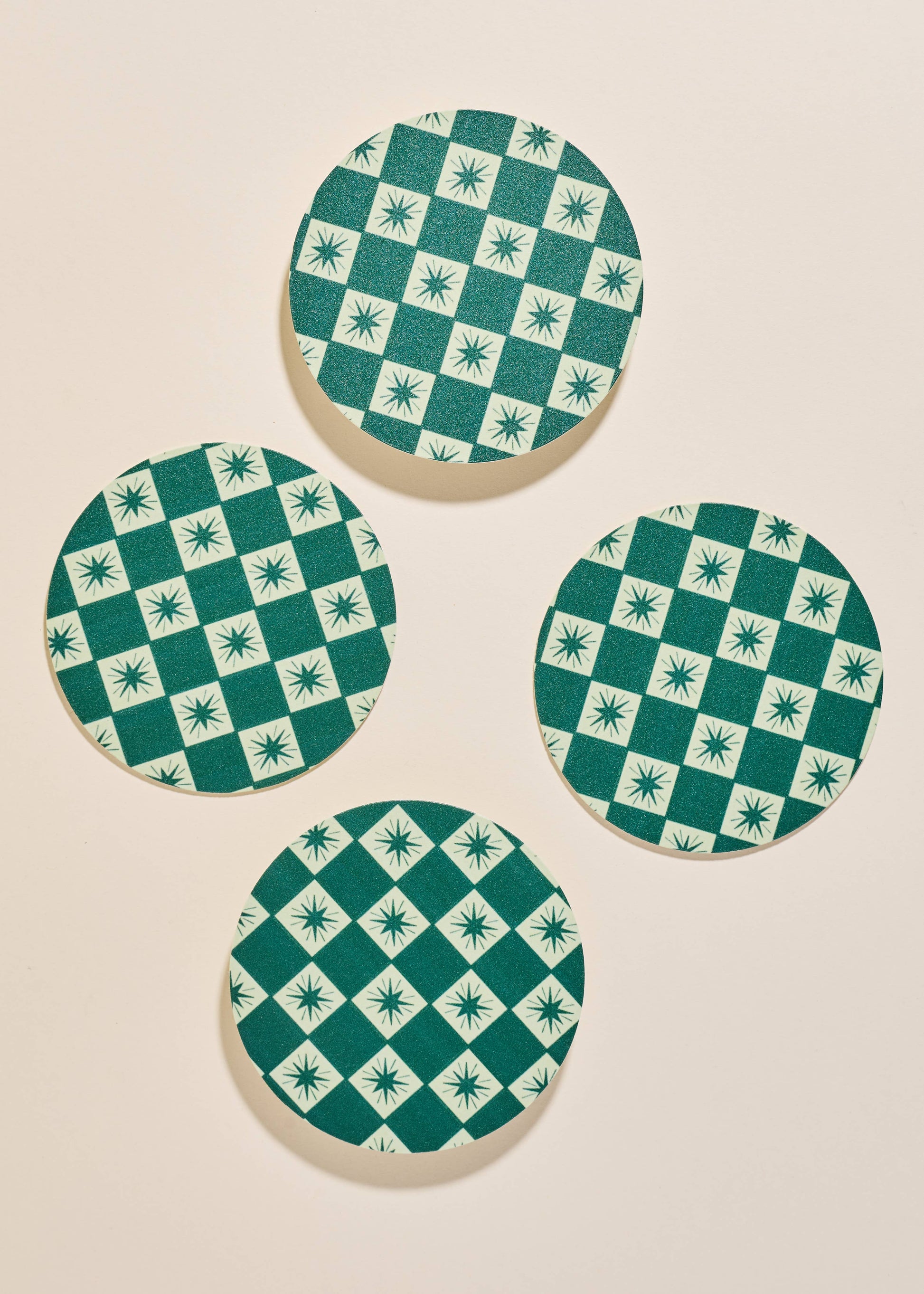 Add a festive touch to your table with this green star-checked coaster, perfect for holiday gatherings!