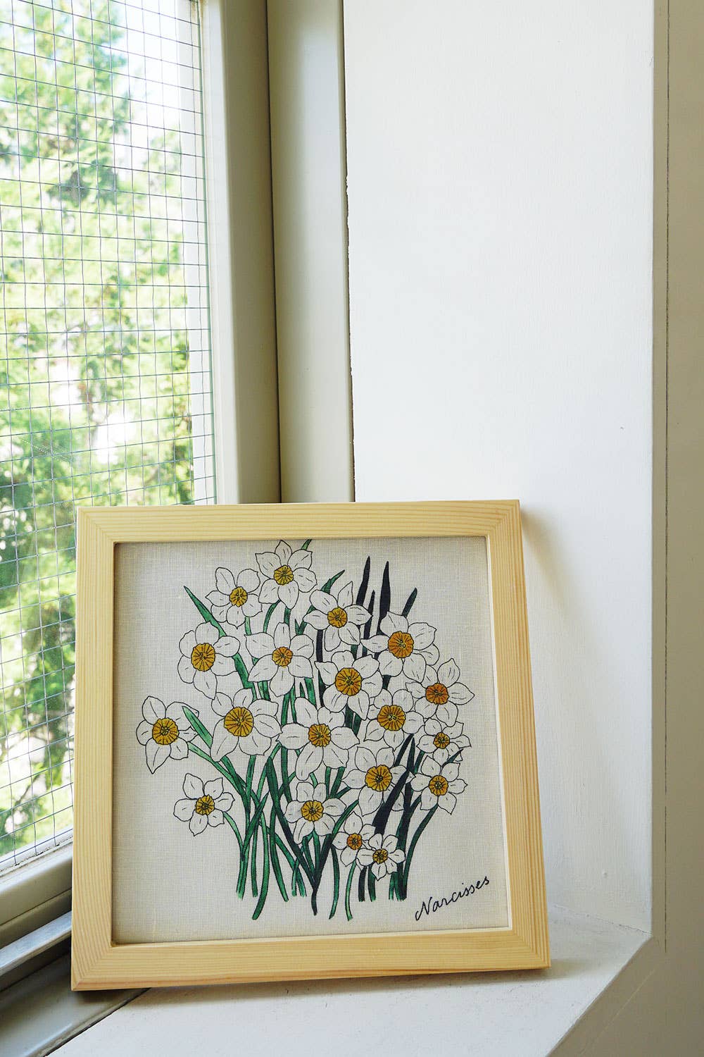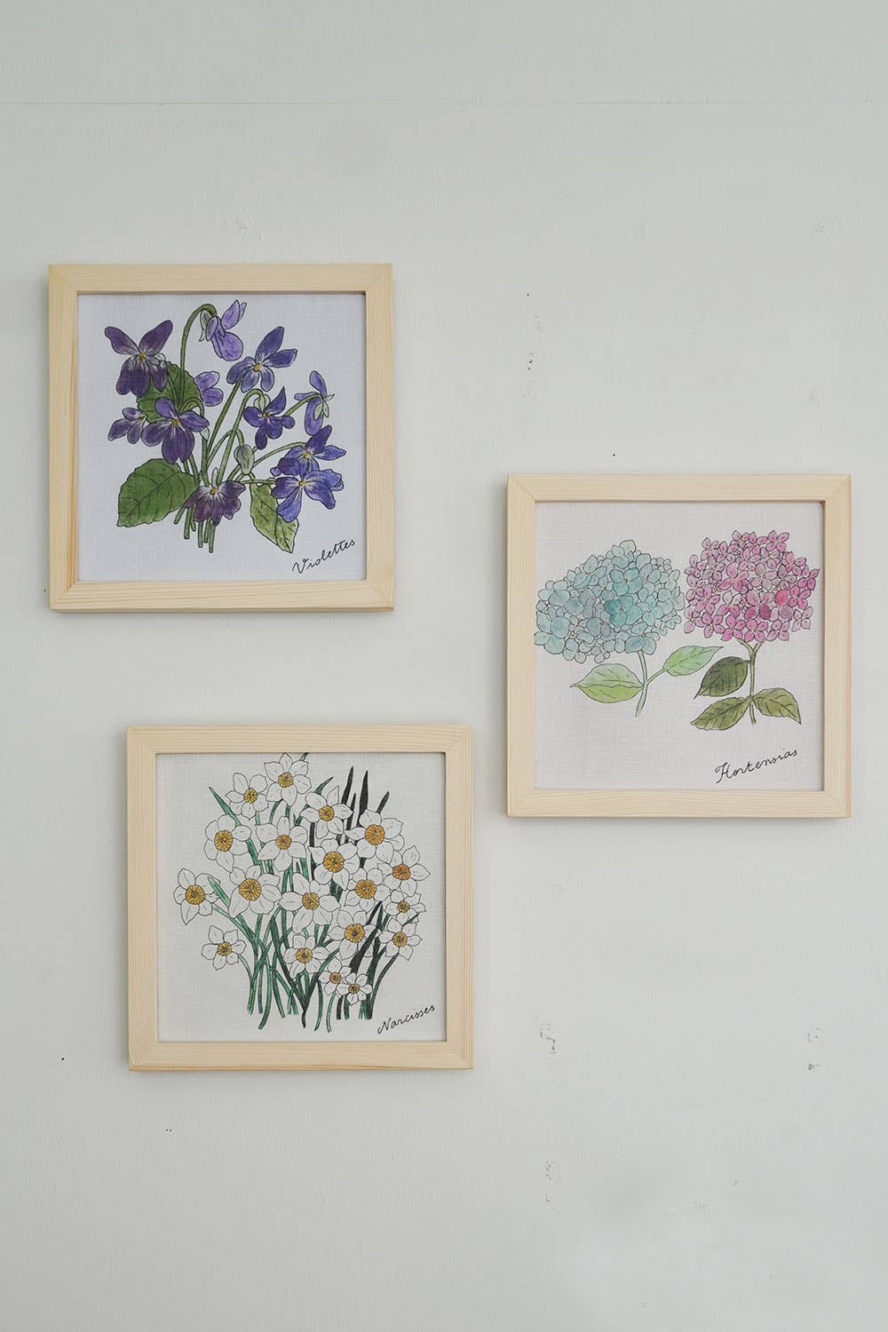 Seasonal flowers are illustrated by Isabelle Boinot, an artist in France. Absorbent, quick-drying, and made for everyday use. This slightly small size will fit in your purse for everyday use. It is also a nice petite gift. Size: W 25 × L 25 cm
