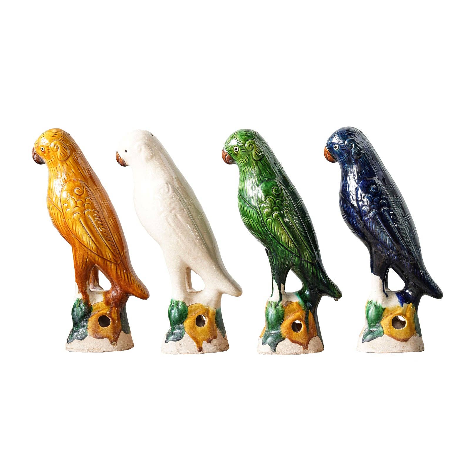 The colorfully glazed Jingdezhen Hand-Painted Porcelain Birds are antique reproductions and come as a 4-bird set. Each clay-crafted bird sits resolutely and without pomp in a solid, bold hue. The Jingdezhen Hand-Painted Porcelain birds were crafted in the namesake city of China that sits south of the Yangtze River and is home to one of the oldest ceramic centers in the world.