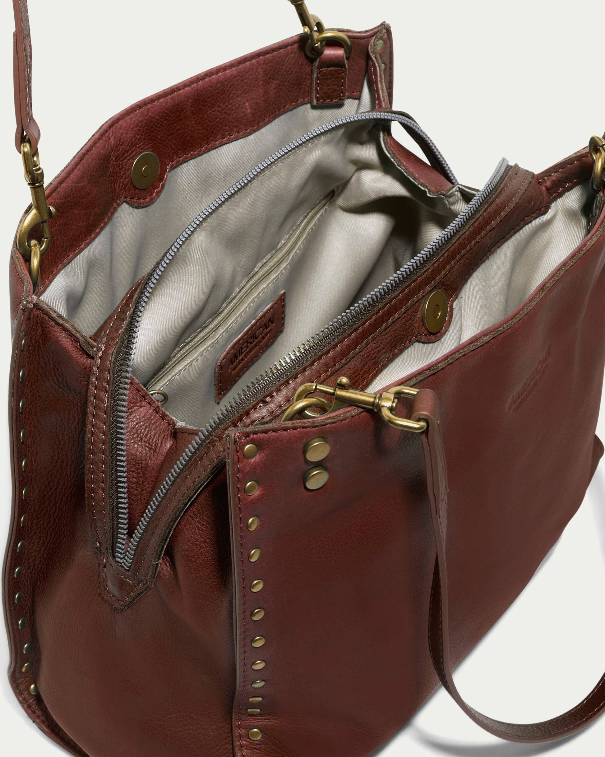 Elevate your everyday style with our updated satchel, featuring elegant stud detailing that adds a touch of sophistication. With a sleek exterior and practical interior, this satchel is designed to help you stay organized and stylish for any occasion. Our products are crafted from high-quality materials intended to withstand all your adventures.