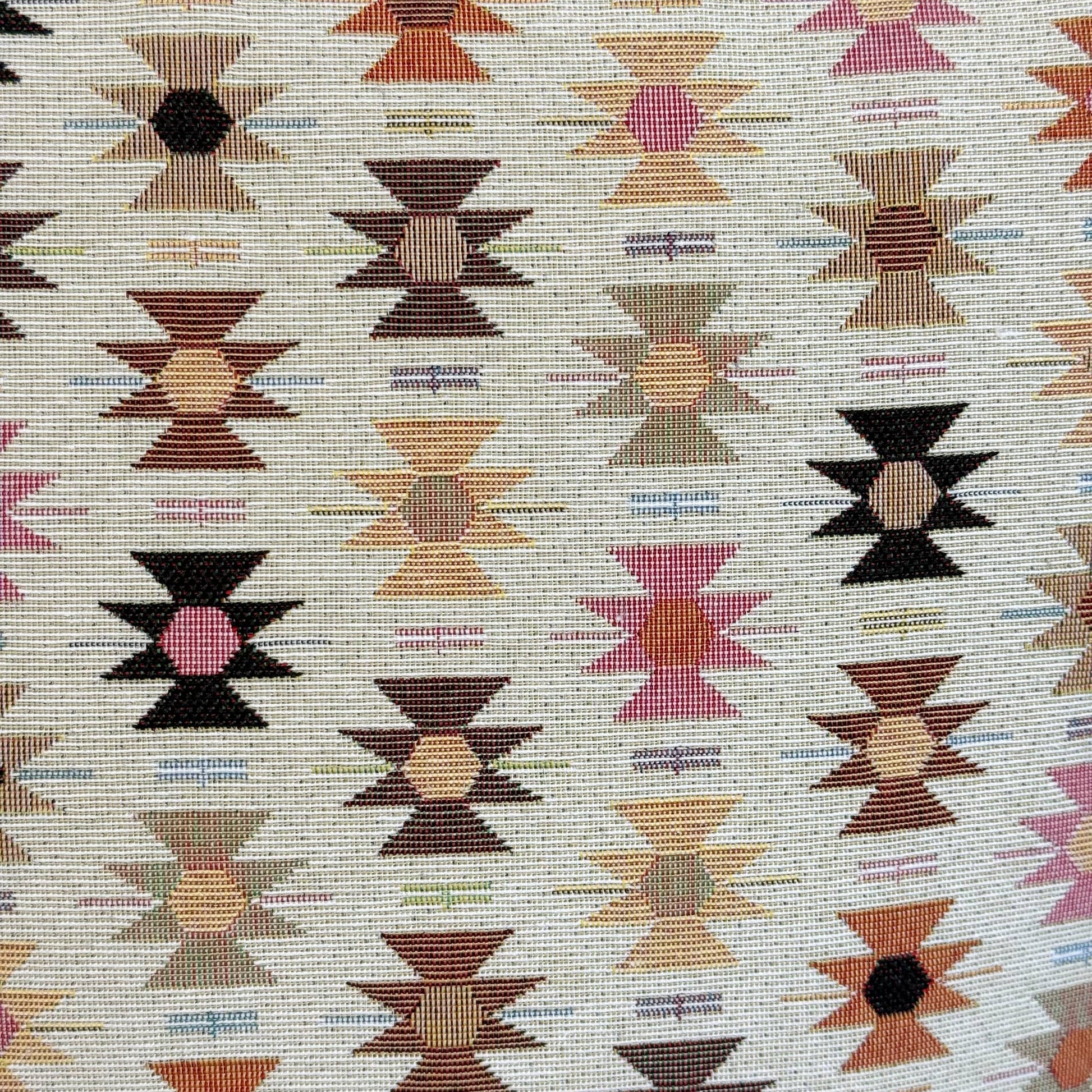 Tote bag with shoulder straps. Made from jacquard fabric featuring a geometric pattern in pink and orange tones. Includes a top zipper closure. For proper care, we recommend washing in cold water and not tumble drying. Ideal for carrying notebooks, a planner, or an extra layer of clothing—very comfortable for everyday use. It has a relatively small capacity, yet fits quite a lot. A timeless, everyday tote bag.