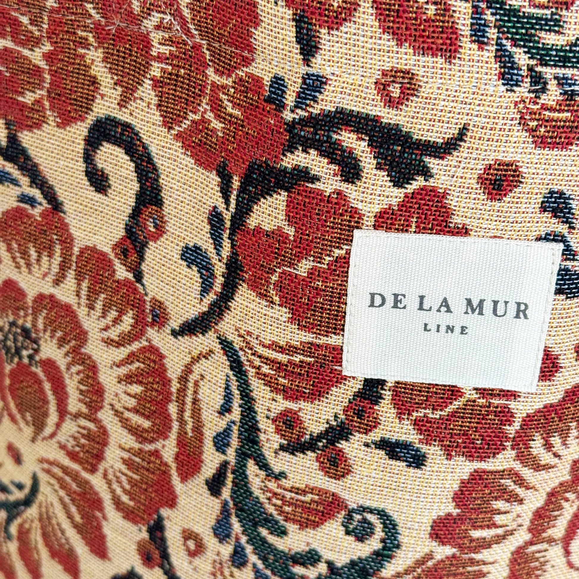 Oval-shaped bag with shoulder straps. Made from thick jacquard fabric with a floral pattern in red and beige tones. For proper care, we recommend hand washing in cold water and avoiding the dryer. A unique bag with a modern shape. Very comfortable for everyday use and offers generous capacity. Width x Height: 14.6 x 12.2 in. Made in Spain with locally sourced fabrics.