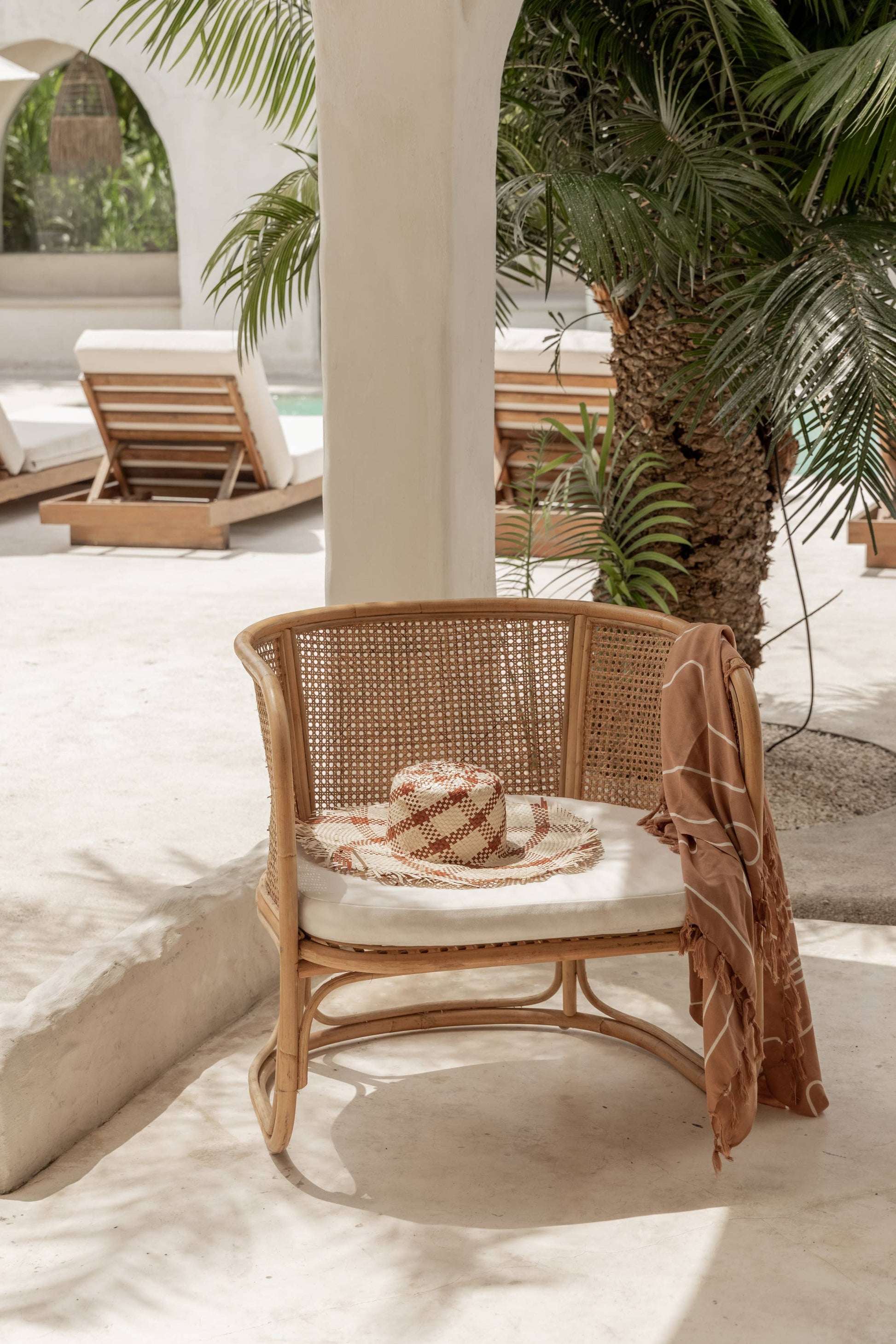 Keep the summer sun off your face and out of your eyes with our elegant, hand woven, plaid patterned sun hat. Made from natural materials in Bali, Indonesia. Size: One size fits most Material: Rontal Leaf
