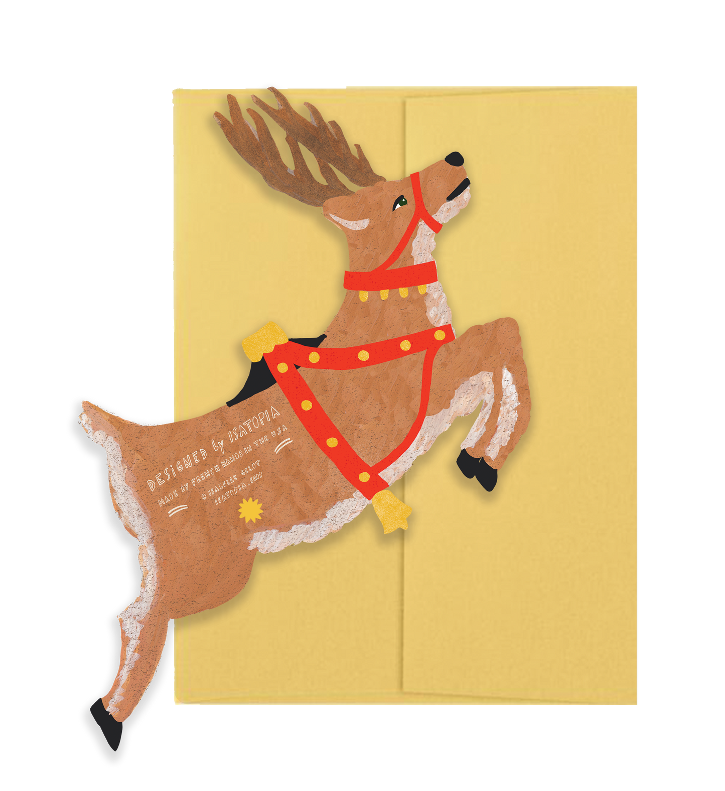 The Reindeer die cut card is part of the new Holiday collection - inspired by vintage Christmas ornaments. Comes with a bright festive gold envelope!