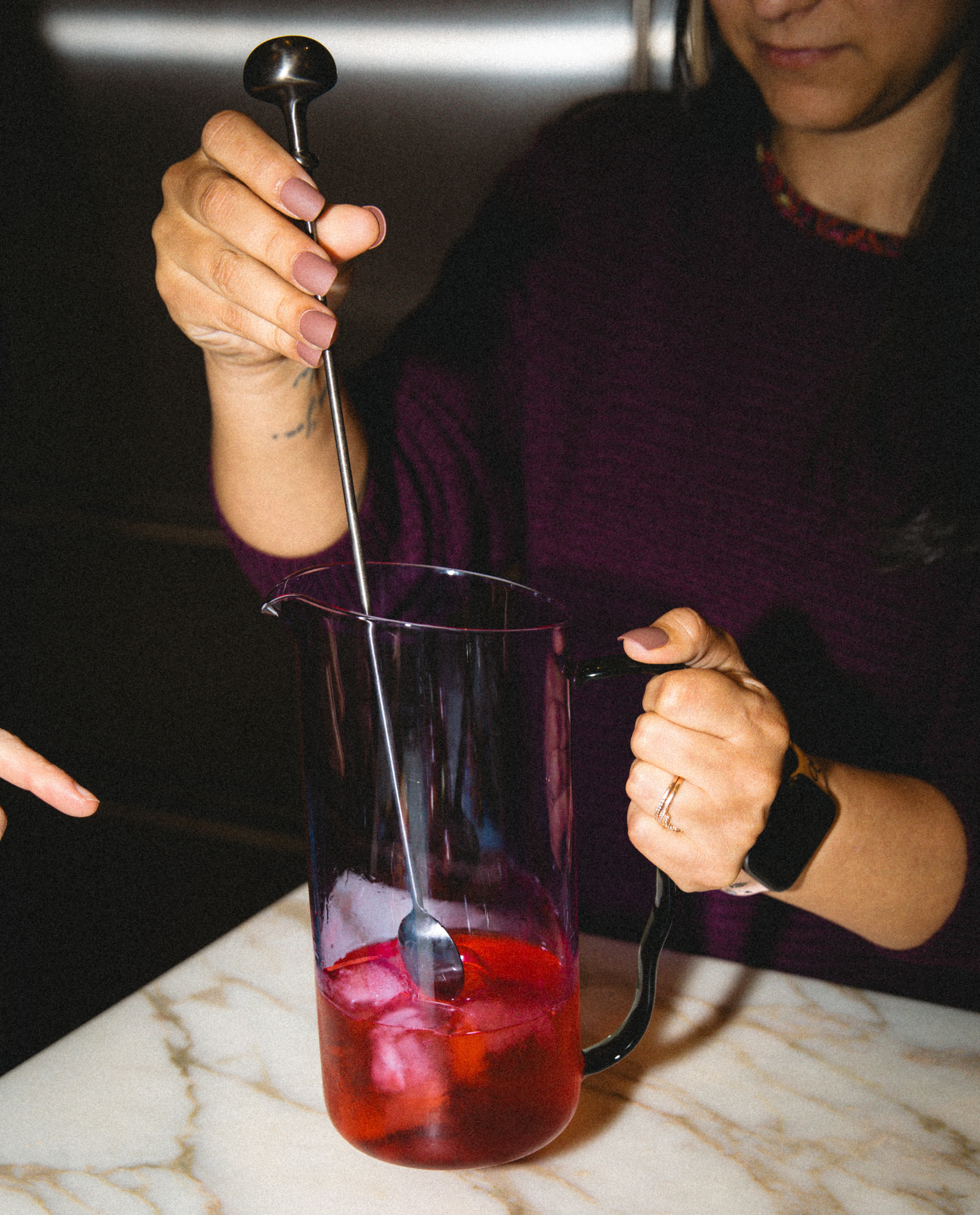 Made in collaboration with the renowned barkeeps at Death & Co. Seamlessly stir, blend and muddle with this double-sided bar mixing spoon crafted for cocktails, featuring a long neck with a muddler on the end.