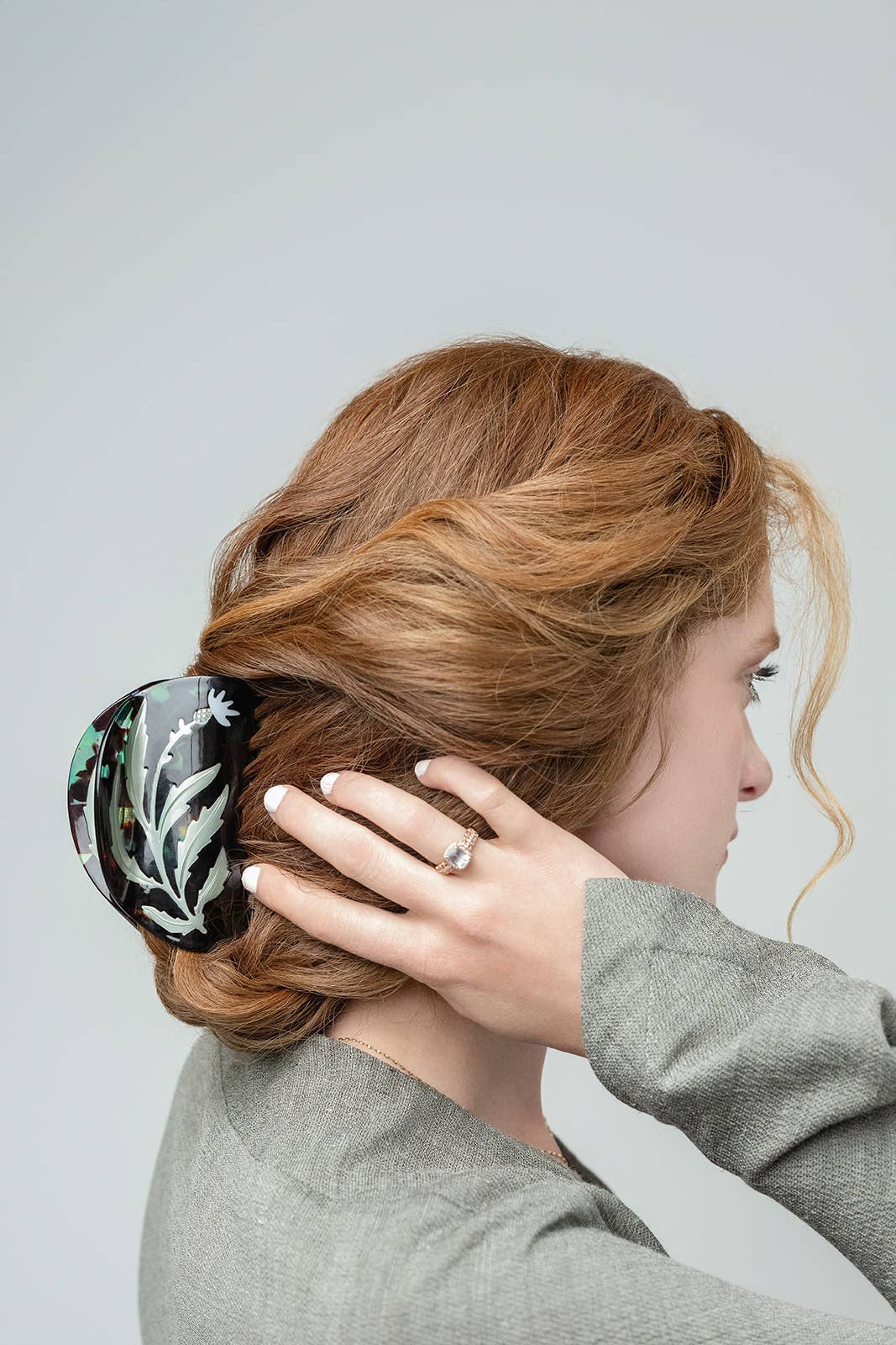 Vervain Flower Herb XL Hair Claw in Green Tortoise Acetate