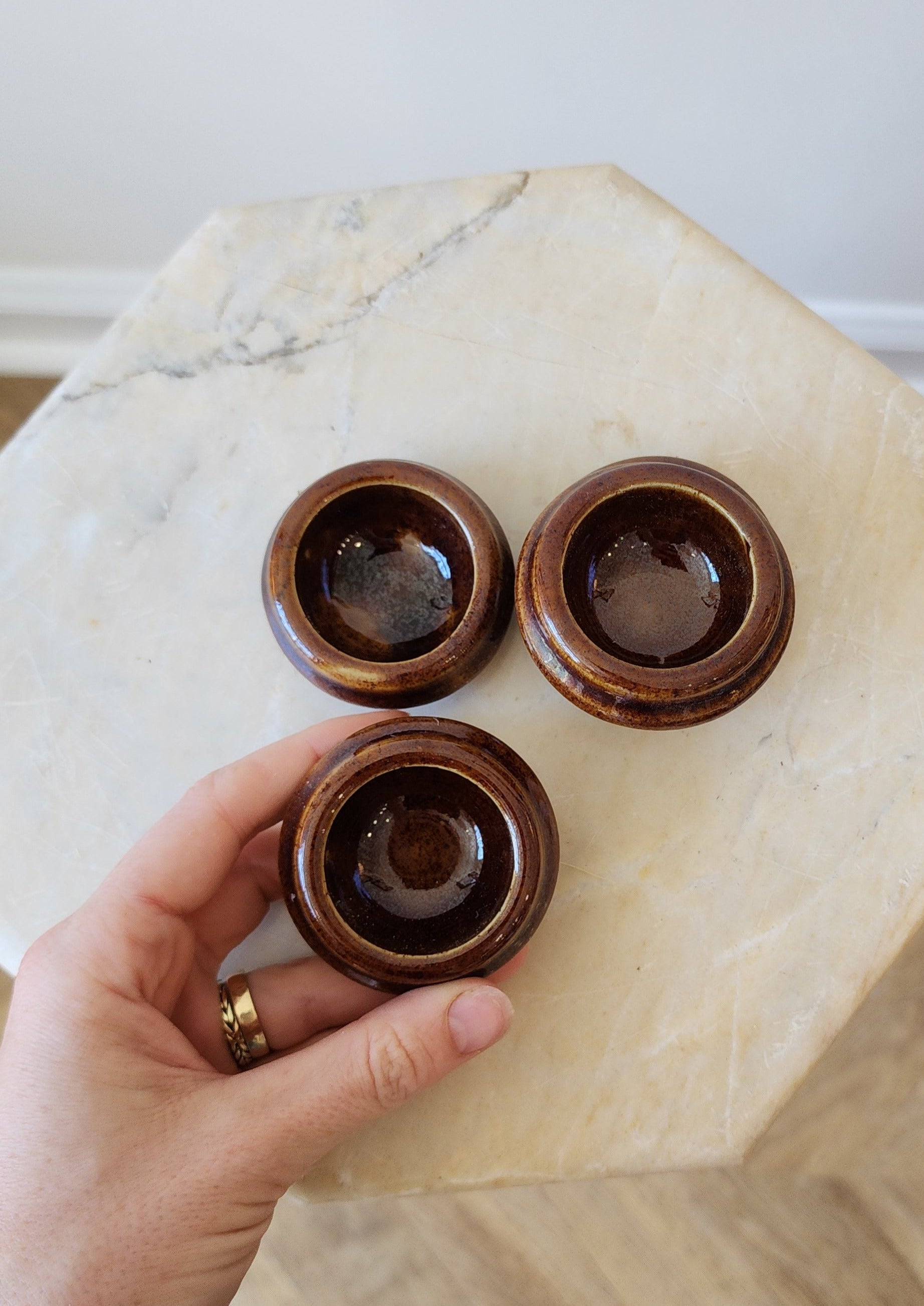 Vintage French Pottery, each handmade. These pots were found in a factory that went out of business. They kept every unsold piece from large orders that were never completed. Each year a few palettes are imported, cleaned up, and made for sale. These are unique with small differences given their handmade quality.